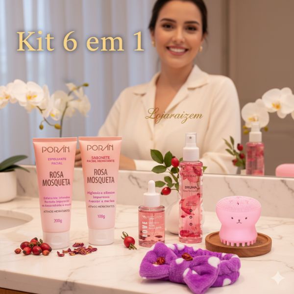 Mas a boa notícia é: você pode transformar sua pele em poucos passos com o Kit Skincare Rosa Mosqueta Lojaraizem.