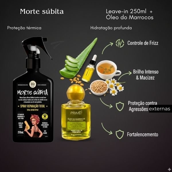 Kit B Spray Reparação Total Morte Súbita 250ml + Óleos de Marrocos Prime 8ml Lojaraizem