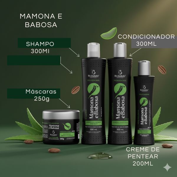 Mamona (óleo de rícino) + babosa (aloe vera) é uma das combinações naturais mais poderosas para tratamentos capilares. Juntas, elas atuam como um combo de crescimento + hidratação + fortalecimento.