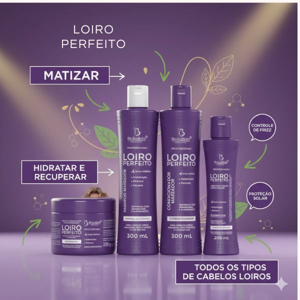 A linha Loiro Perfeito foi desenvolvida para matizar, hidratar e recuperar todos os tipos de cabelos loiros, descoloridos, grisalhos ou com mechas.