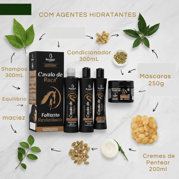 Kit profissional cavalo de raça ante queda e fortalecimento dos fios.